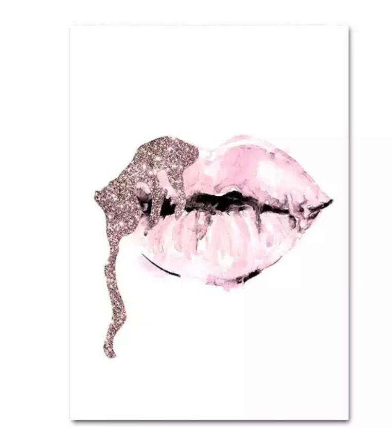 【PinkGlitterLips】ピンクラメ ルージュリップ コットンキャンバス タペストリー 絵画 ウォールアート ポスター